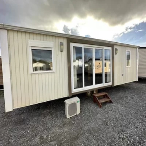 Entdecken Sie unser gebrauchtes Mobilheim der französischen Marke Trigano. Dieses Modell in ausgezeichnetem Zustand verfügt über ein großes Wohnzimmer sowie 3 Schlafzimmer und ein Badezimmer. Das Badezimmer hat zwei Eingänge: einen vom Wohnzimmer und einen direkt vom Schlafzimmer.